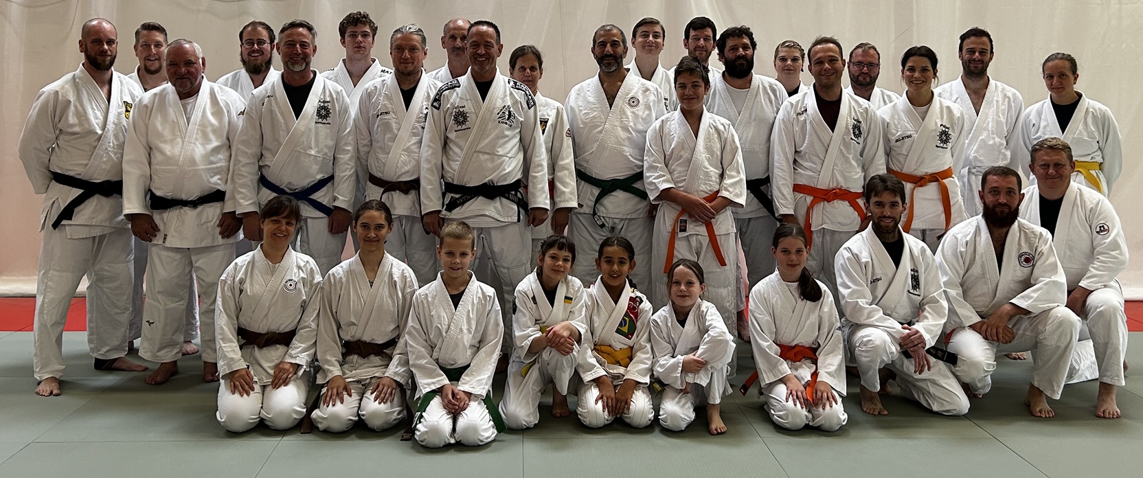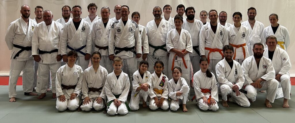 Patrick und Yannick übernahmen die Gruppe der Fortgeschrittenen, Sebastian und Stefan wendeten sich den Anfängern und mäßig Fortgeschrittenen zu. Entsprechend des Könnens der einzelnen Teilnehmenden wurden die Würfe der Grundschule, wie z. B. der „allseits beliebte“ Soto-Maki-Komi bei den höher Graduierten sowie Basiswürfe aus dem Gelb- bis Grünprogramm bei den Einsteigern, erläutert und gemeinsam ausprobiert.